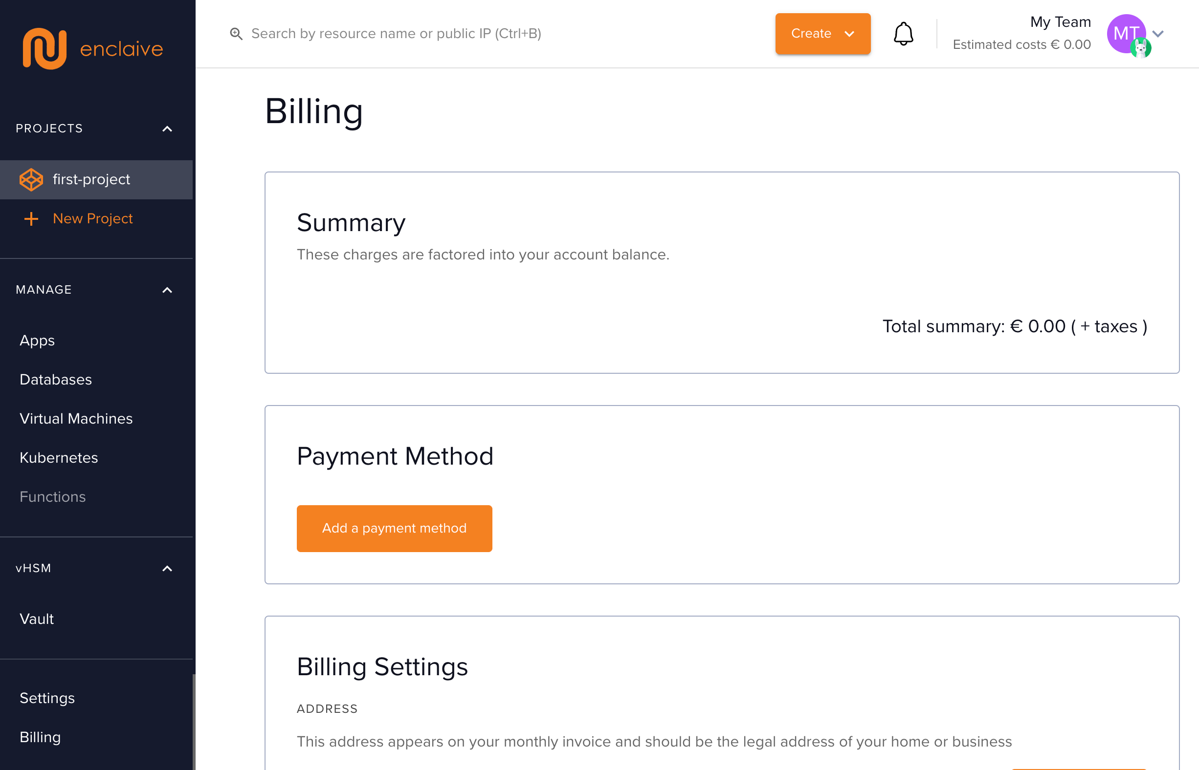 1. Navigate to the `Billing` tab of the panel, and click on the `Add a payment method` button.