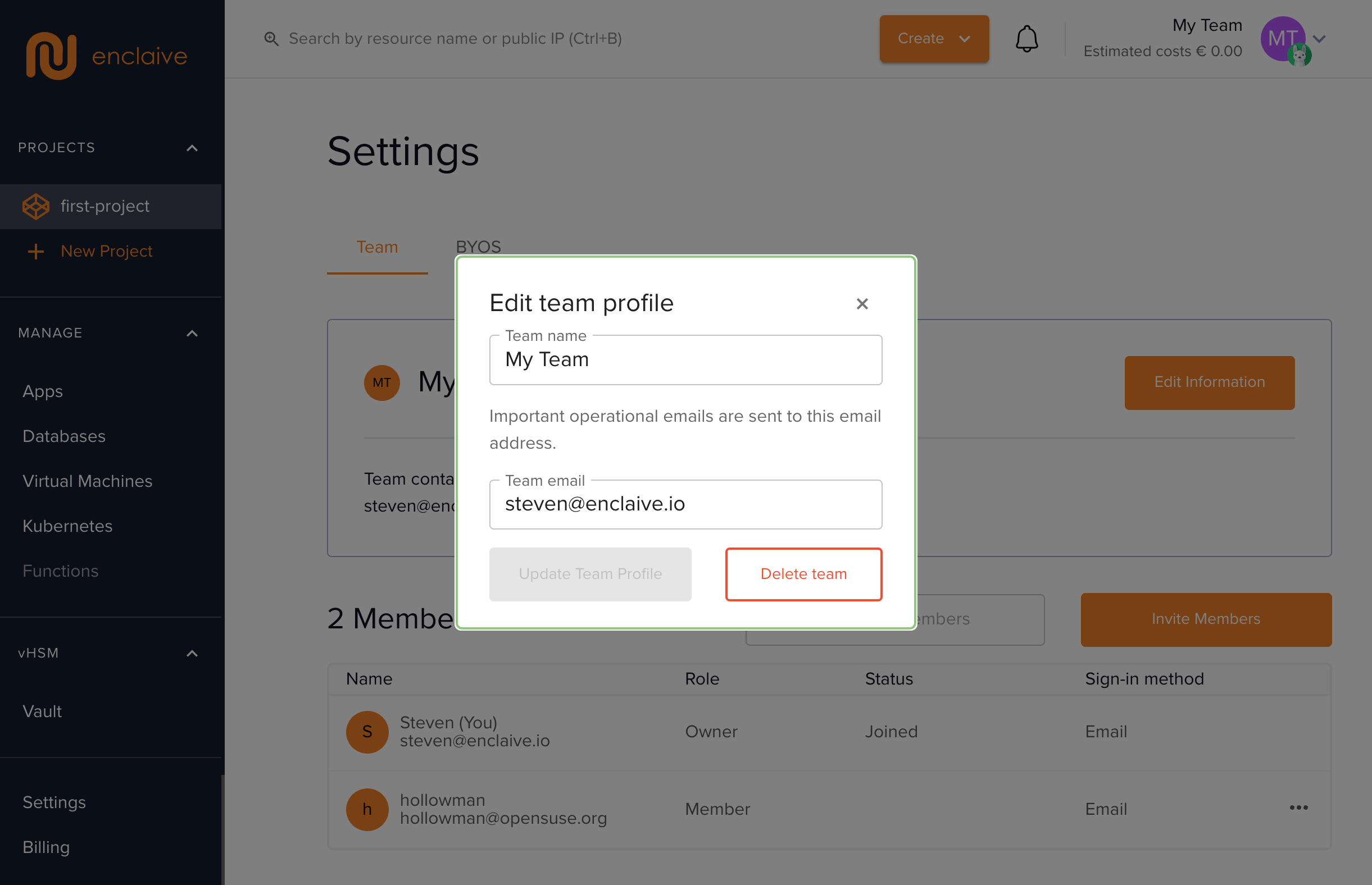 1. Navigate to the `Settings` tab of the panel, and click on the `Edit information` button.