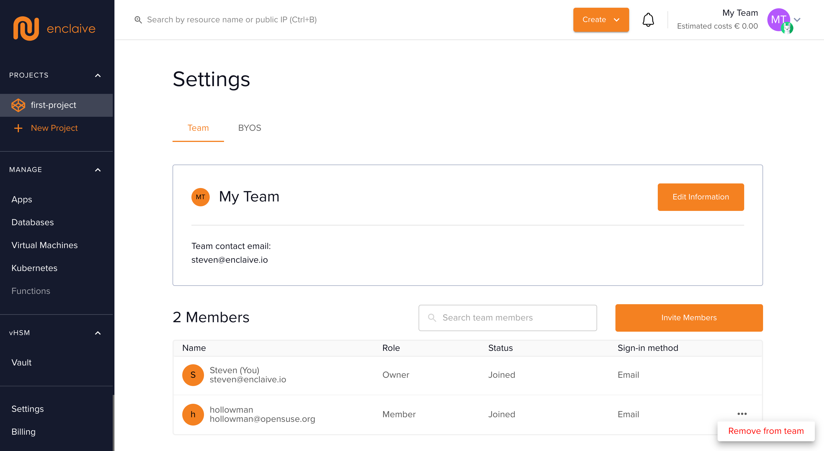 1. Navigate to the `Settings` tab of the panel, and click on the three-dot button of the team member you want to remove.